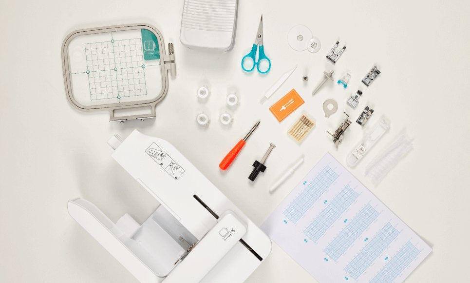 Placez l'unité de broderie et le cadre à broder, puis sélectionnez le motif. Vous êtes prêt à broder ! D'autres cadres à broder sont vendus séparément en option.